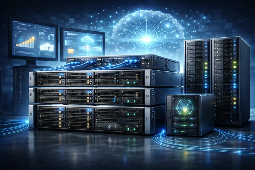High-Performance-Cluster für maximale Rechenleistung, Virtualisierung und kritische Unternehmensprozesse. Ausgelegt auf sehr hohe Datenlasten, KI-/Workflow-gestützte Prozesse und den parallelen Betrieb zahlreicher Anwendungen. Höchste Ausfallsicherheit durch erweiterte Redundanzmechanismen.